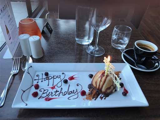 Idag kom jag fram till Queenstown där nästa mara ska avverkas på lördag. När jag checkade in på hotellet kommenterade receptionisten mitt födelsedatum, tydligen skvallrade hon för kökspersonalen också... Lite tidigt att börja med kolhydratuppladdningen men det här går ju inte att tacka nej till. :-)