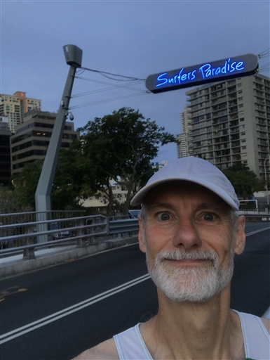 En eftermiddag på stranden med premiärbadning i Stilla Havets tjugofemgradiga vatten följdes av löpning i ungefär samma lufttemperatur allt medan solen gick ner. Tydligen har jag vant mig vid värmen ordentligt nu för det kändes inte alls speciellt varmt. Sprang en runda från mitt hotell på Mermaid Beach upp till den mest klassiska stranden, Surfers Paradise. Verkar som om superkompensationen från förra lördagens marathon kickade in ordentligt idag, det kändes riktigt lätt att springa i strax under femtempo. Mellanmjölk, javisst, men så jämrans skönt att bara ”go with the flow”.