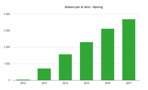 Målet gällande mängd för 2017 var 3000 km och därmed ingen ökning från 2016. Dock insåg jag efter halvårsavstämning att jag snittat 1 mil om dagen. Reviderade då målet till 3650 och lyckades efter lite extra fokus i nov och dec att bibhålla snittat och utfallet blev till slut 3689,2 km! Det är jag nöjd med men kommer inte sätta några nya mängdmål för 2018. 8/12 månader +300km med min och max noteringar på 240 och 380.