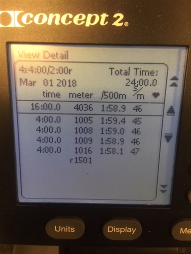 Kontrollerade 4x4 intervaller på Skierg, kändes bra! 2 min lugnt innan, mellan och efter intervallerna.