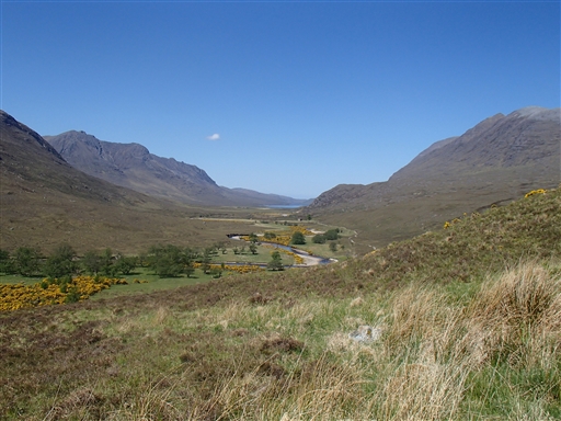 Strålande väder och superfina stigar i Fisherfield Mountains. Kände mig riktigt utvilad i benen och jag kunde springa överallt. Även i backar. Fick till och med hejda mig och spara på benen. Lite oroande ont i en hälsena i början men det blev bättre. Troligen skon som trycker på lite.