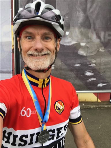 Väl framme i mål blev det medaljutdelning till alla deltagare – me, myself and I. Medaljen hade jag fått av HCKs ordförande redan igår mot löfte att cykla rundan ASAP, och den hade legat i vänster ryggficka hela varvet runt. Med medaljen om halsen blev det sen en riktigt stillsam hemcykling.