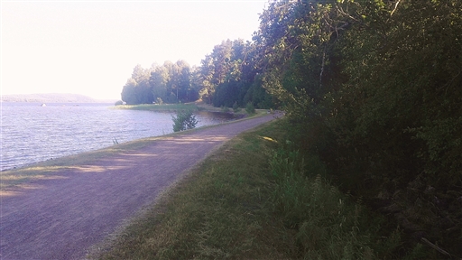 Idag blev det en tur in mot Leksand och aedan tillbaka efter stranden. Solig och varm morgon.