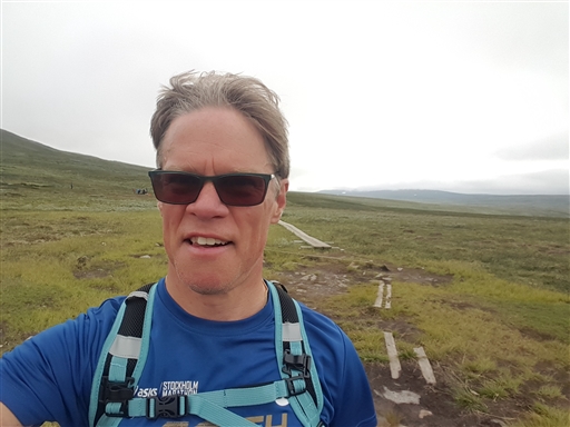 Prövade nytt sätt att springa och det var riktigt kul. Lätt rygga med regnkläder och lite fika. Sträckan var bekväm utan vad och myrar. Efter ett tag lärde jag mig löpa på spängerna också, utan att spänna mig alltför mycket. Bara den sista biten upp mot Sylstationen var bitvis stenig. Tyvärr var det dimmigt så utsikten uteblev, men det smakade bra med rejält fika på den ombyggda stationen.