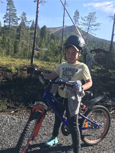 Ossian följde med mig på en morgon tur i spåret nedanför stugan. Soligt men ändå lite krispigt i luften :)