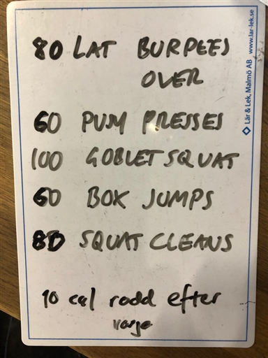 Inget lördagspass på Basic p.g.a. almanackans röda siffror. Så fick ta tag i det på egen hand. Jag och Jonas J hade hittat en passande pumpa-par-wod. Så den körde vi.