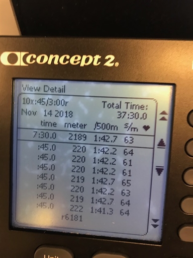 Skierg intervaller: 10x45 sek/3 min lugnt