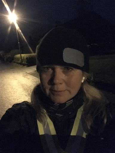 En höstrunda som sig bör, lite småblött, lite snålblåst och reflexerna fick göra sig förtjänta. Men i sällskap med Hillevi och Håkan var det som att springa längs en solig sandstrand och det är aldrig fel.