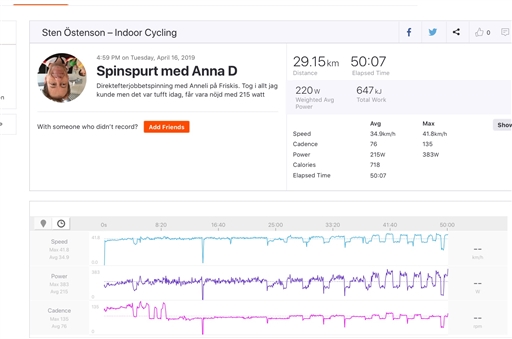 typ, distans, tid och snittfart. Stjärnmedlemmar kan kopiera samtliga fält och diagram.