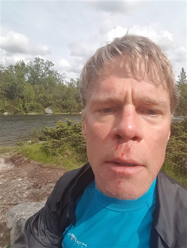 Fin fjällöpning tills marken kom upp och slog mig i ansiktet. Knäna fick sig också en törn, men inget allvarligt.