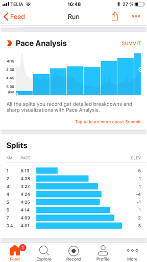 typ, distans, tid och snittfart. Stjärnmedlemmar kan kopiera samtliga fält och diagram.
