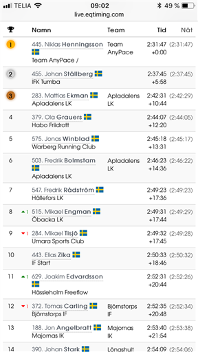 Tack Pär. Ja, sett till resultaten håller jag med men så blev det inte tyvärr. Dom första varven i klunga sen drog jag och Ola (379). När jag sen släppte var jag för trött för att haka på nån som sprang om.