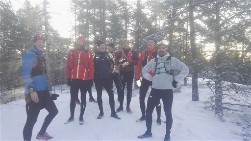 Vi blev ett gäng som fångande solen på en härlig löptur med några cm snö på marken.