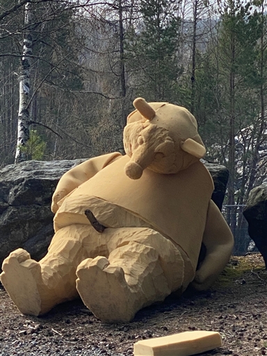 En mindre runt gropen. Träffade på en märklig figur ute i skogen (se bild)