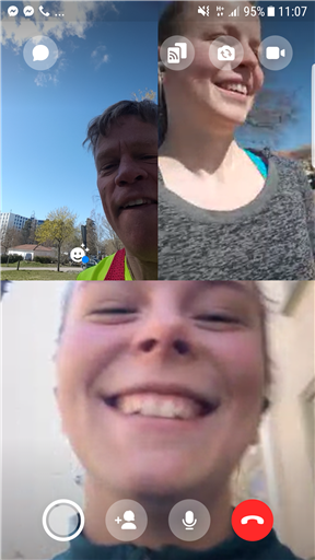 Med telefoner i händerna sprang vi tillsammans, A i Kalmar, H i Jönköping och T i Oskarshamn. Planen var väl att köra 5 km som förra söndagen, men humöret var på topp och vädret fint på alla tre ställena så efter ett tag kom vi överens om att kuta lite till. H hade aldrig tidigare sprungit så långt som 10 km, men hon satsade stort och gav sig på att runda Munksjön, ivrigt påhejad av oss andra. Jag drog ut i obygden så min uppkoppling lade av lite då och då - möttes alltid av glada tillrop när jag kom tillbaka. A tog en extra sväng på Stensö för att komma upp i 10. Lustigt nog höll vi nästan samma tempo alla tre.