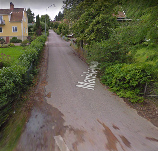 Springer ungefär upp till elskåpet på höger sida. Eller lyktstolpen på vänster sida.