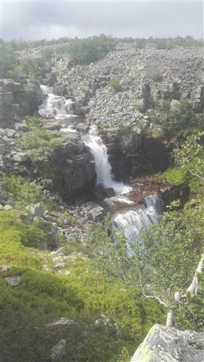 I år valde vi leden ovanför vattenfallet. Mycket sten uppe på sluttningen. Vädret varierade från sol, regn och hagel lite om vart annat.