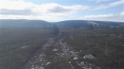 Förefrukostträning på leden upp till Närfjällets topp. Ganska blött på spången i början. Annan väg hem.