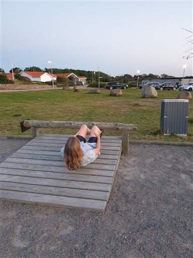 Kolla solnedgång och sen lite träning i utegymmet vid hotellet
