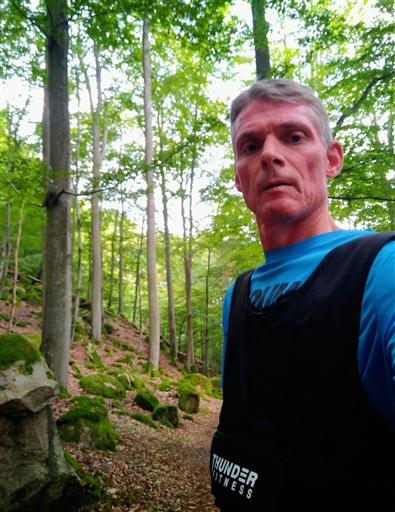 Styrkepass i backarna med hjälp av 8kg viktväst. Riktigt bra träning för fram- och baksida lår och på slutet känns det i vaderna också. Funkar bäst så länge det är uppför och brant nerför. Go känsla när musklerna får jobba! På platt mark och lätt nerför känns det mest som risk för överbelastning på knäna. Blir mycket obanat för att hålla mig i så backig miljö som möjligt och det är också mjuk mark där. Klockan ger mig - 20=Dåligt i träningseffekt men jag är riktigt nöjd och mör i benen efteråt.