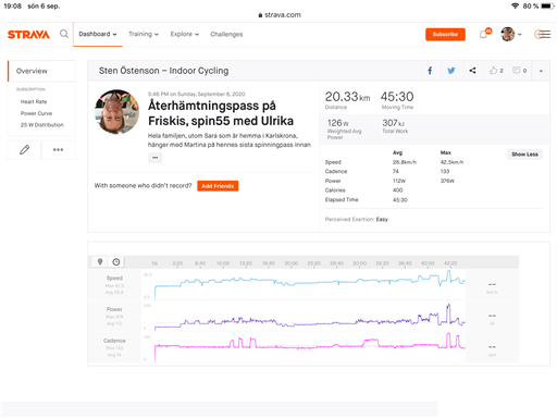 Återhämtning efter gårdagen, kör utan belastning o njuter av strech o att jag känner mig ganska fräsch ändå efter gårdagens virtual Stockholm Marathon