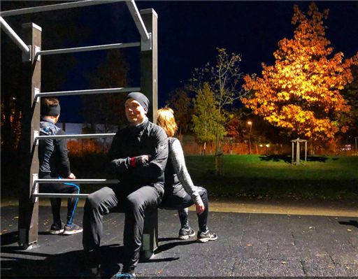 Till och från utegymmet. Idag med musik!