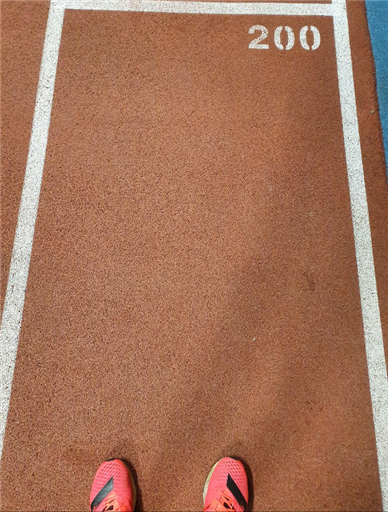 Lite regn så går man inomhus. 5*2*200m med 1 min vila. Snittet blev 41.5 s. Körde utan fotpod och då felar klockan mycket i högre farter. Första uppvärmningen mätte den exakt till 1.00 km. Men sedan fick den 200-ingarna till allt mellan 240-300m. Gissa vad snabb jag är om jag gör 300m på 41s :-)
