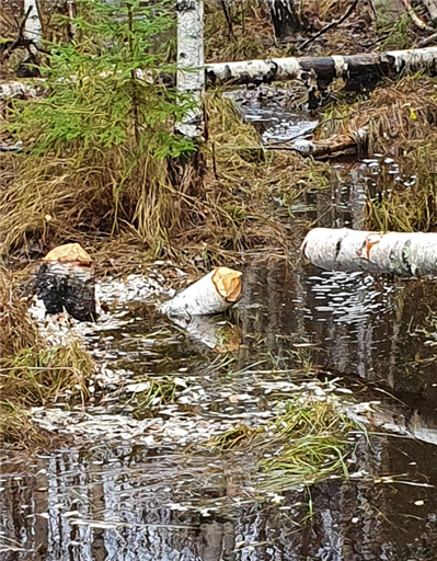 Mest grusvägar vid Stångtjärn. På en liten väg låg ett träd tvärs över vägen. Bävern hade jobbar på bra.