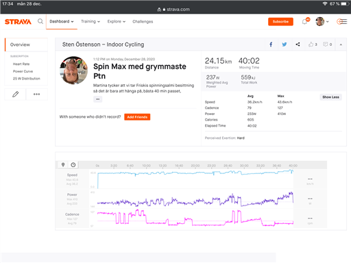 typ, distans, tid och snittfart. Stjärnmedlemmar kan kopiera samtliga fält och diagram.