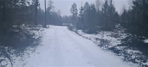 Började med asfalt då det fortfarande var mörkt när jag gav mig ut. Snöfall och lärt vind. Nysnö kvar på vissa ställen.