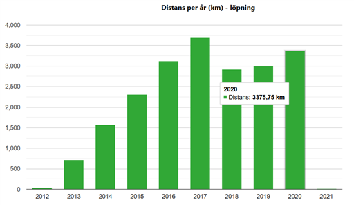 Totalt senaste 10 åren har har jag nu sprungit 2170 mil.