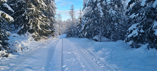 Långt söderut på delvis nya marker som jag tidigare inte sprungit på. Mestadels på plogade vägar men ibland på stigar med orörd snö.