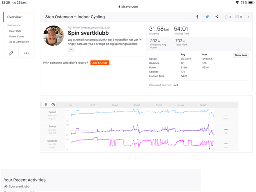 typ, distans, tid och snittfart. Stjärnmedlemmar kan kopiera samtliga fält och diagram.