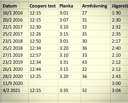 Jag har svarat på andra ställen om denna bild. Det är Runacademys fystester men det är inte Cooper utan det är 3000m. För ska man vara nog är Coopers test 12 min och inget annat.
