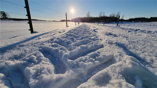 Känner mig riktigt pigg idag. Mycket väder. Sol, moln, snöbyar och ganska blåsigt. Har vinden i ryggen och solen i ansiktet sista milen från Linderöd så där är det skönt, även om det är lite knöligt på spåret här och där.