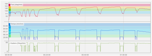 4*9 min (3 min 4:43 3min 4:33 3min 4:23 min/km). 2 min gåvila Kändes bra.