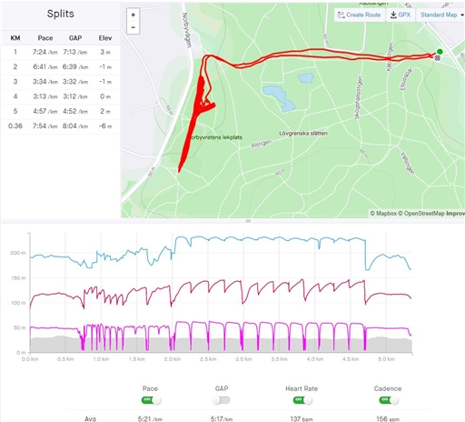 Inte riktigt min grej men kul att ta i och ny toppnotering för puls i år. Försökte tänka på hållning och teknik men gillar inte riktigt att springa snabbt på gräs. Ingen bild så blir skärmdump från Strava som komplement.
