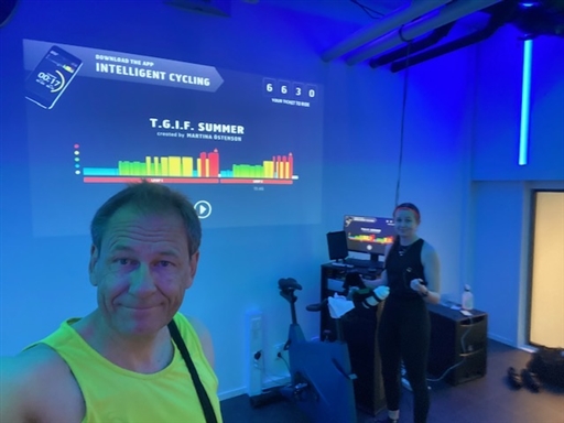 Vi hänger med Martina på hennes spinpass när vi ändå är på plats i norr
