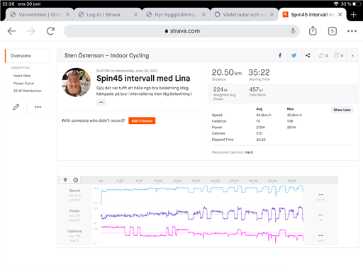 typ, distans, tid och snittfart. Stjärnmedlemmar kan kopiera samtliga fält och diagram.
