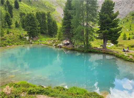 Läste Mats kommentar om värmen och jag kontrar med en badbild. Eller inte, för i Berglisee var vattnet så kallt så man undrade nästan varför det inte var is. Å andra sidan är det en gammal glaciär.