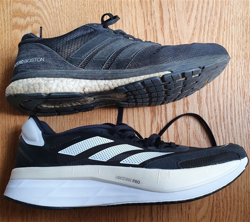Premiär med ett par nya skor. Adidas Boston 10. Tunga grejor med en vikt på 305g. Normalt inget för LeifA. Men det som är speciellt med Boston 10 (som inte har mycket gemensamt med tidigare Boston-modeller) är att det är Karbon-skor. Men jämfört med Pro så är de mer som gamla skor på ovandelen. Men viktigast är att de har en rejäl sula så att skorna ska hålla längre och dessutom så går de utmärkt att springa med på grusunderlag.