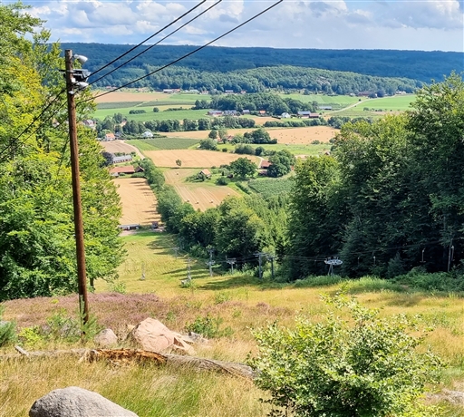 Liftspåret upp är ca 500m och 125 höjdmeter. Finns sedan massor med mountainbikestigar att följa nerför. Provar ett par men det är väldigt mycket stenar, rötter och branta stup. Funkar bättre att ta skidbacken ner.