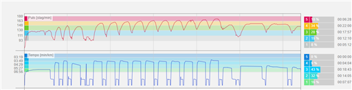 Väl igång började jag förhandla med mig själv om längre vila eller dela upp i 2*5st. Men efter 5st med 60s vila så insåg jag att det trots allt inte var så jobbigt att det inte skulle gå. Inför sista draget tänkte jag att nu skulle jag definitivt kliva ut ur komfortzonen och köra i 3:45 fart, 16 km/h. Det gick det med även om det blev lite högre upp i den röda zonen.