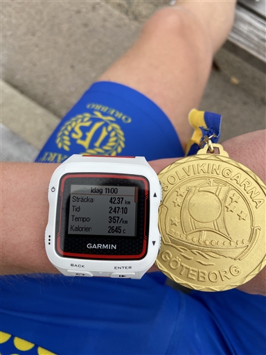 På klockan 2,47,10 vilket också blir den officiella tiden. Nöjd att jag fixat 3 mål men hade hoppats på ännu mer. Måste dock sluta fokusera på vad som skulle kunna gått bättre. I alla fall stanna upp och vara nöjd och tacksam. Trodde då att jag var M40 5´a men hittar nu i efterhand inte Ashkan Fivrin från Hälle i resultatlistan. Hm, måste ha brutit.
