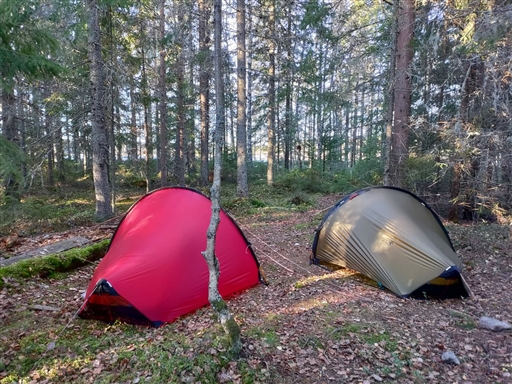 Tälttur med Marie-Louise. Mycket mysigt, mörkt, kallt och blåsigt. Men faktiskt rimligt varmt i supervarm sovsäck och fint tält. Soligt och vindstilla när vi vaknade.