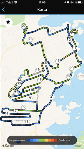 Idag avverkade löpargruppen merparten av gatorna i Berga villaområde i ost-västlig riktning. Trögt åt väster då det både var uppförsbacke och vind i den riktningen