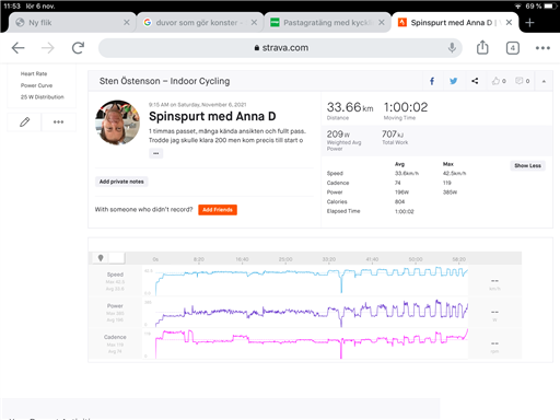 196 watt på en timme, ska ju va 200 mem ok, duktigt trött så det kändes bra och helt ok för att vara morgonpass, egentligen långpass löpning idag men det blev spin