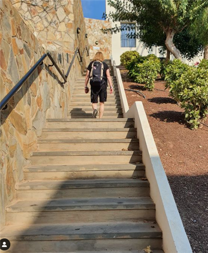 Intervaller nere på strandpromenaden. 9*330m med 1 min vila. Ingen maxfart men mer flytfart. 1:18 - 1:25. Lite lagom. På förmiddagen 50 min core med stor grupp. Och så lite trappor till rummet. 145 steg är det upp. Och det blir några vändor per dag. (Den finns en bergbana att ta som reserv till apostlahästarna)