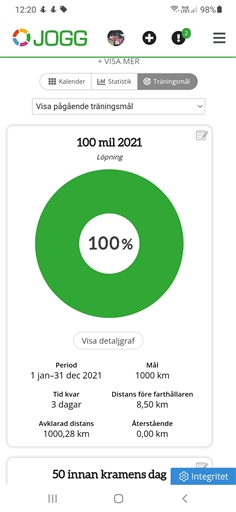 Inatt har jag sovit med utrustning för 24timmars blodtrycksmätning. Vaknade flera gånger av brummadet från den, och hade ont i huvudet på morgonen. Travade ändå iväg till gymmet och sprang en timme. Och titta! Nu är jag uppe i 100 mil löpning 2021!