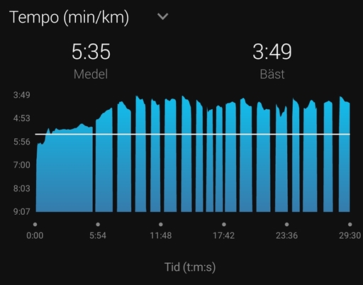 Årets första intervaller- tungt och trögt. Det blev ståvila emellan för att hämta andan och låta benen komma igen.